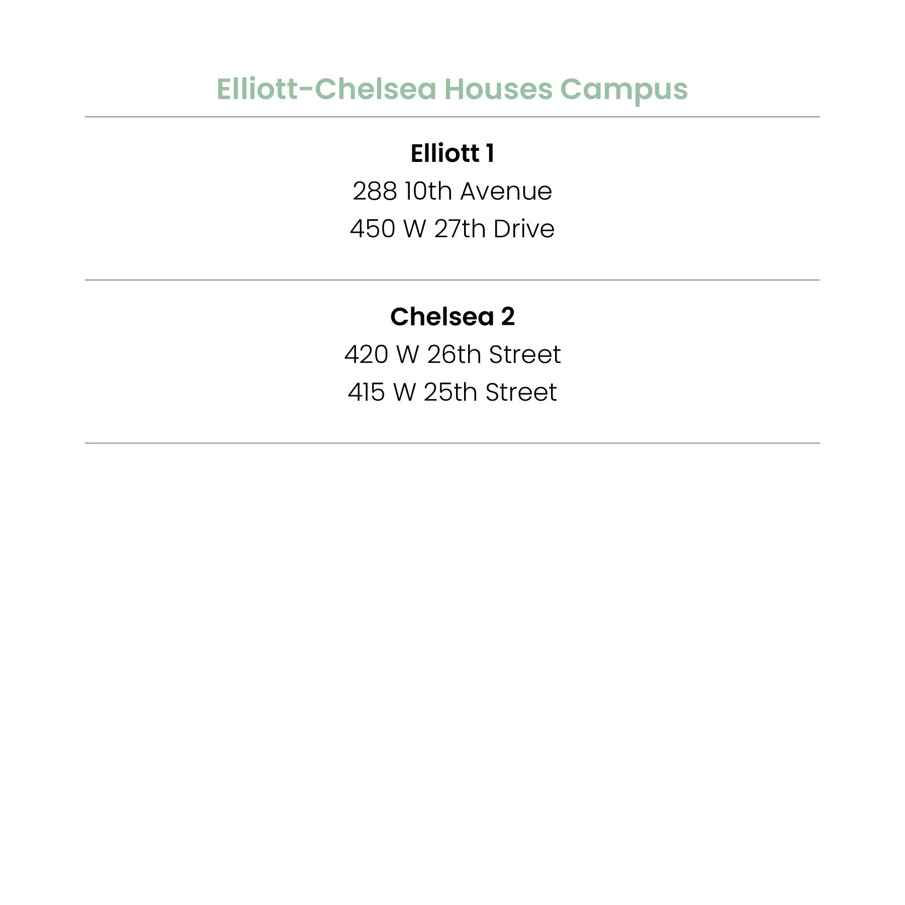 Please note: The resident lottery and temporary relocations only apply to residents in Chelsea Addition (436 West 27th Drive) and Fulton 11 (401 W 19th Street & 419 W 19th Street).Phase 0 Voluntary Lottery for Moves to Temporary Relocation Apartments